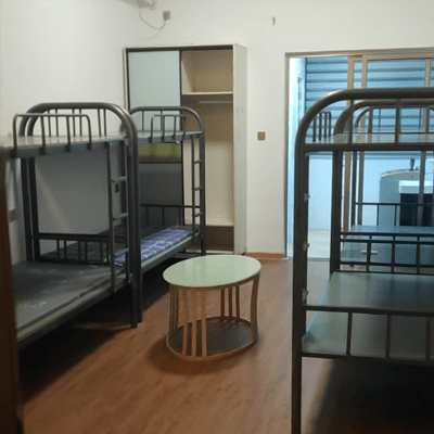 半年合同需要原价格增加100元租金 冷水8.66元,电0.9元 押二付一 (宿舍不配置床,需要自己购买)